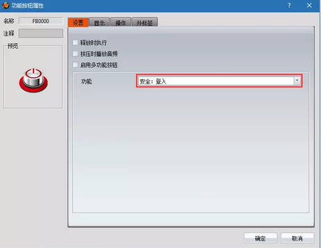 (2)放置兩個功能按鈕,一個選擇“安全:登入”,一個選擇“安全:密碼管理”,如下圖: