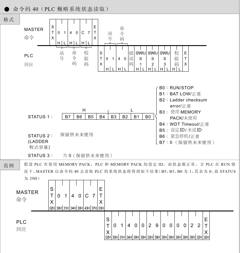 FATEK 臺灣永宏PLC編程指令之命令碼40--PLC 概略系統狀態讀取