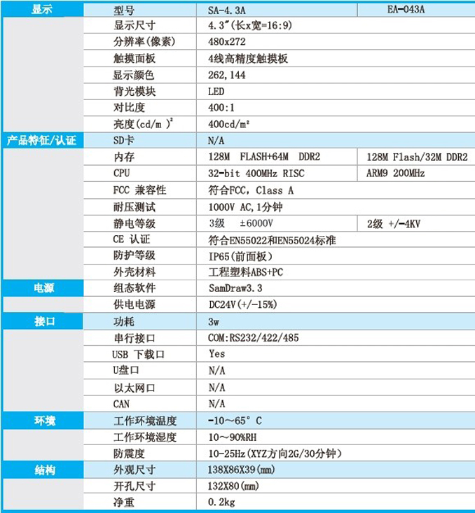 網上采購:顯控觸摸屏EA-043A